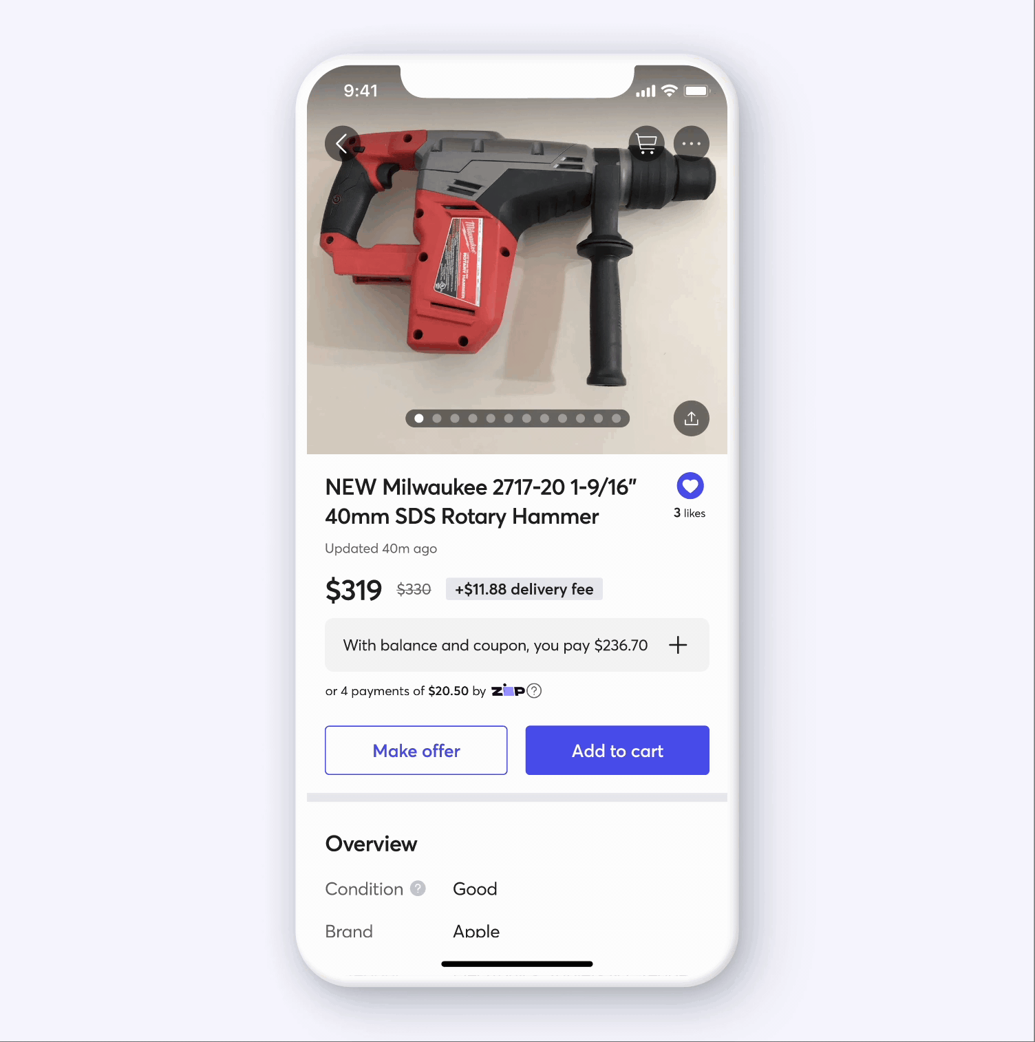 Mercari is a C2C marketplace helping users to declutter their life and create circular economy. When users go through the checkout process, balance is applied automatically. Though the auto-apply mechanism is straightforward, we lack the ability to inform the amount of balance one can spend during the top of the purchasing funnel.