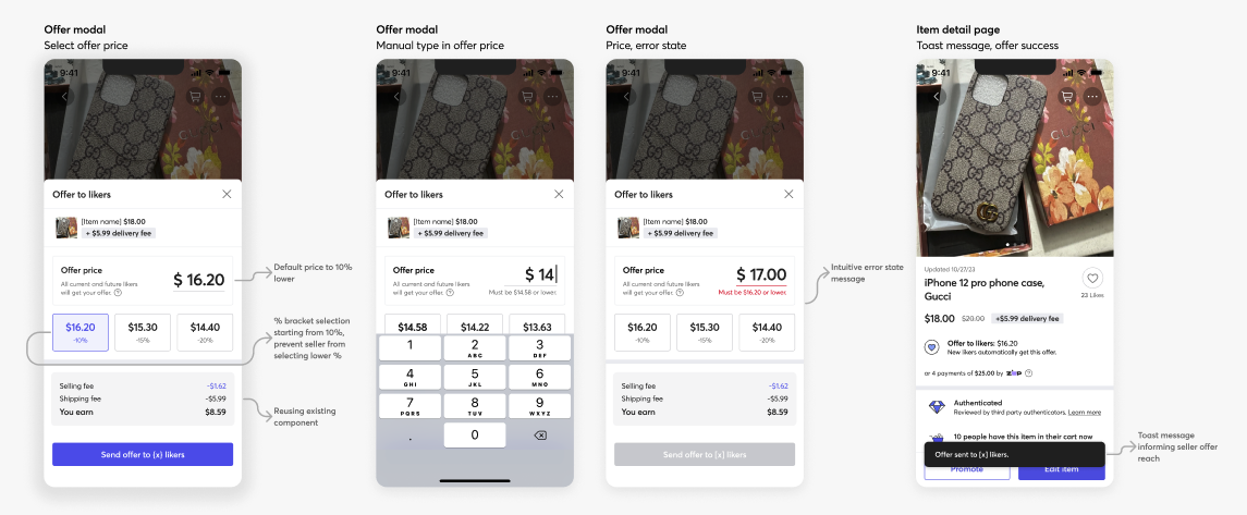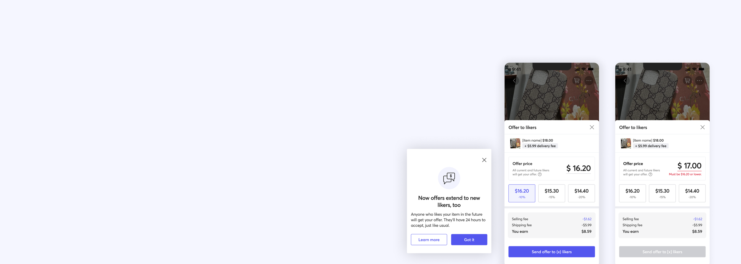Mercari’s original “Offer-to-Likers” feature allowed sellers to promote their listings by sending a discounted offer to people who liked an item. However, the system had two rigid constraints: